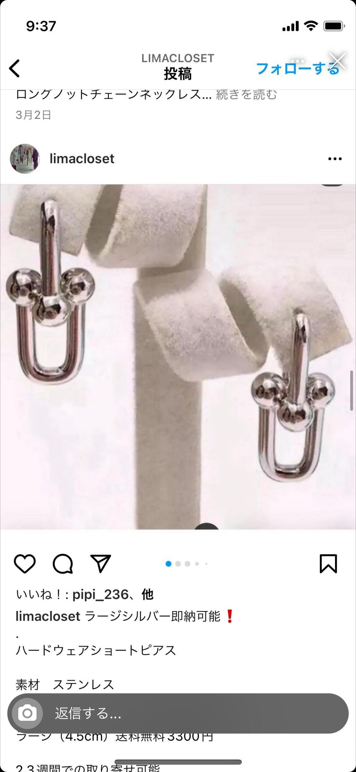 ハードウェアピアスlargeシルバー